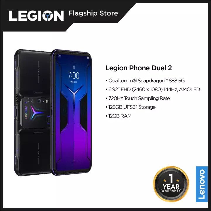 The Lenovo Legion Phone Duel 2 is a premium gaming smartphone. It features a 6.92-inch FHD+ AMOLED display with a 144Hz screen refresh rate, Qualcomm Snapdragon 888 chipset, 12GB or 16GB of RAM, and up to 512GB of internal storage.